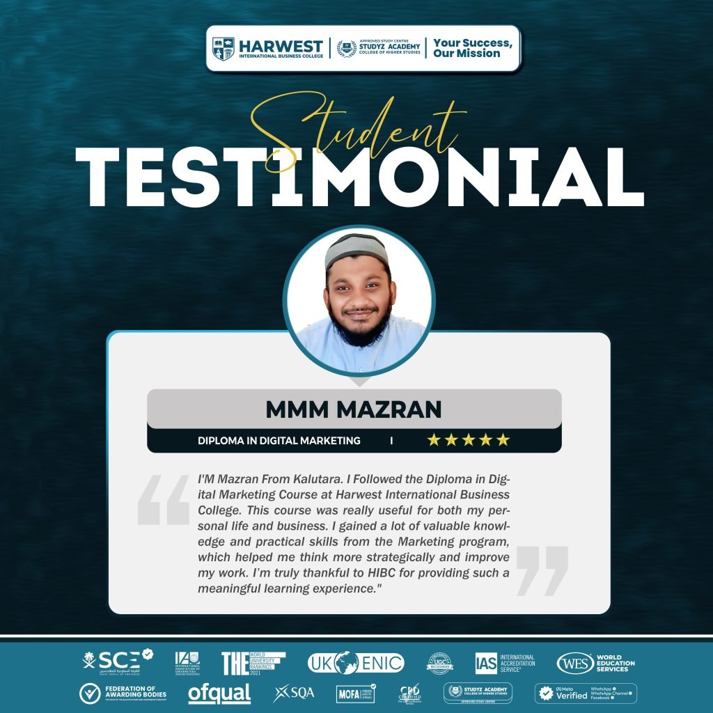 Feedback | Diploma in Digital Marketing | Mr. MN. Himas Ahamed | Harwest International Business College