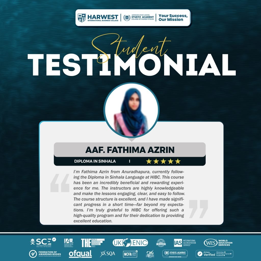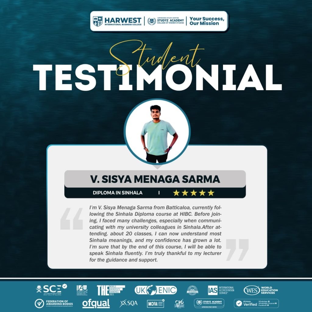 Feedback | Diploma in Sinhala | Miss. S. Harshini | Harwest International Business College
